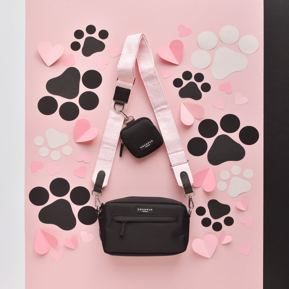 Luxe Dog Walking Black Bag Bundle - Baby Pink Heart