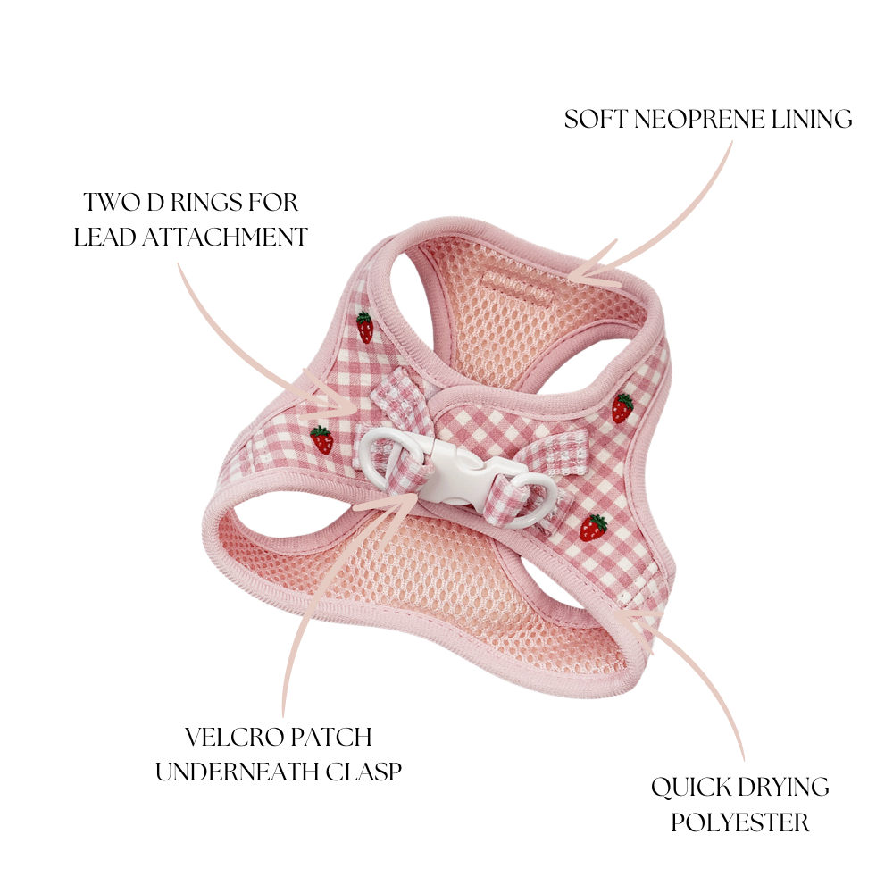 Take your kitty on an adventure this spring with our adorable cat harness in Strawberry Picnic! Made for stylish and playful cats, this harness features an embroidered design, perfect for standing out on your next adventure. Now your furry friend can explore in style! Meow!
