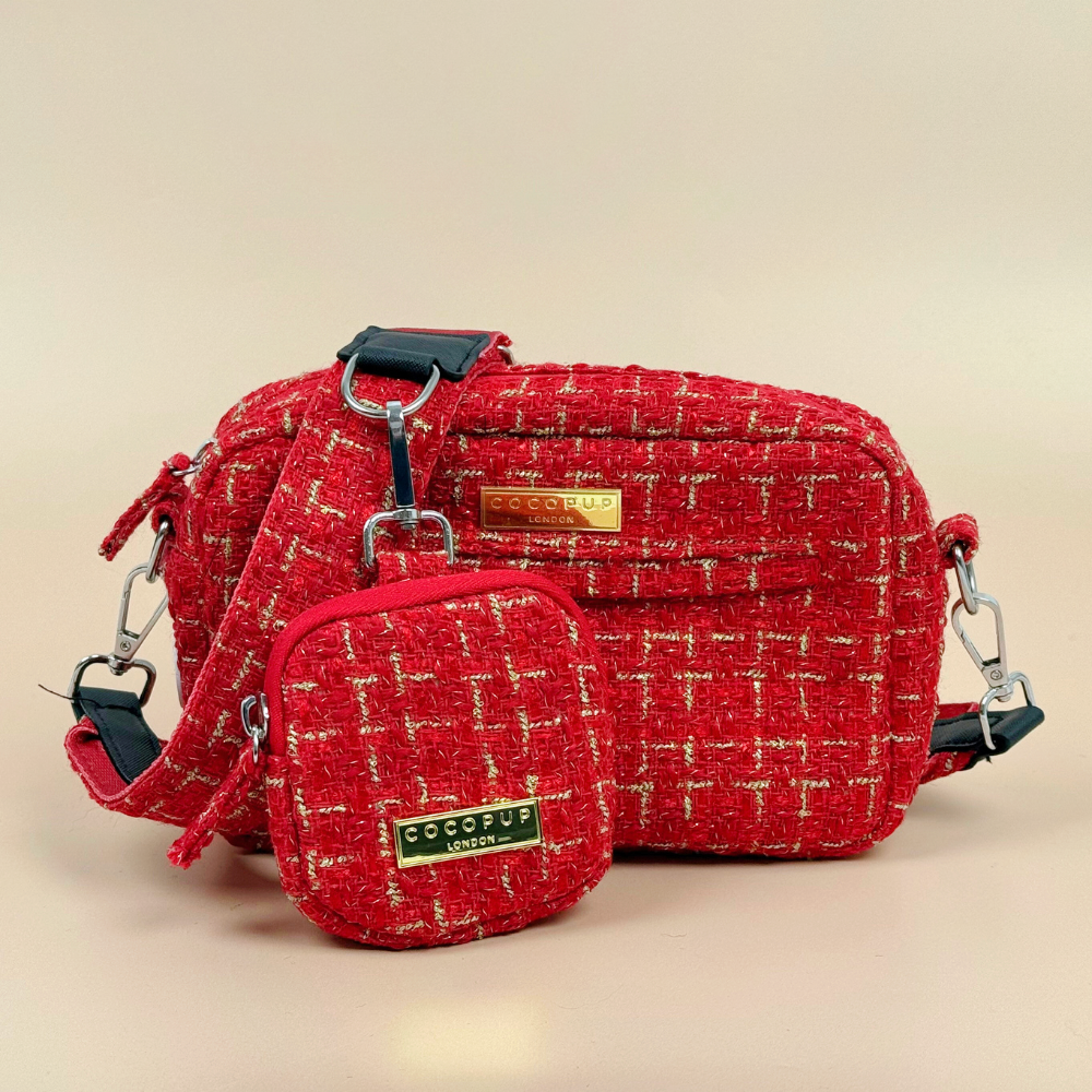 From dog walk to dinner date, this Red Textured Tweed Dog Walking Bag Bundle has got you covered. The festive red colour and textured tweed add a touch of elegance to your daily walks. Stay stylish and functional with this quirky and versatile bag.