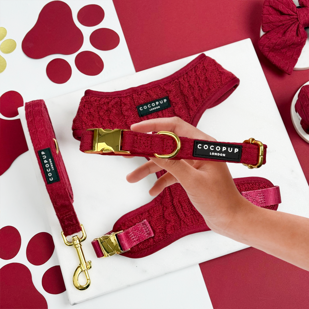 Add a splash of style to your pup’s autumn and winter walks with the Cable Knit Collar in Mulled Wine. Made from cosy material and finished with gold hardware, this collar keeps your dog comfy and looking fabulous no matter the weather!