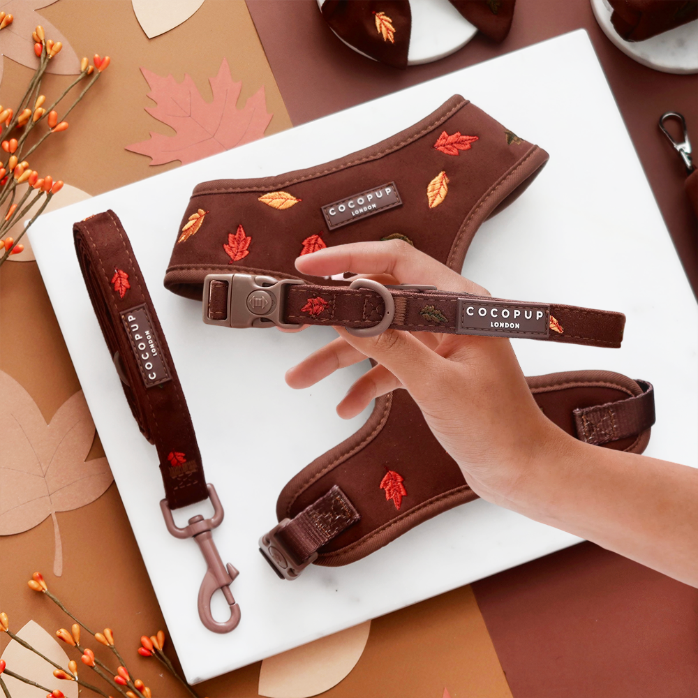 Pawtumn Leaves Adjustable Neck Harness, Lead & Collar Bundle