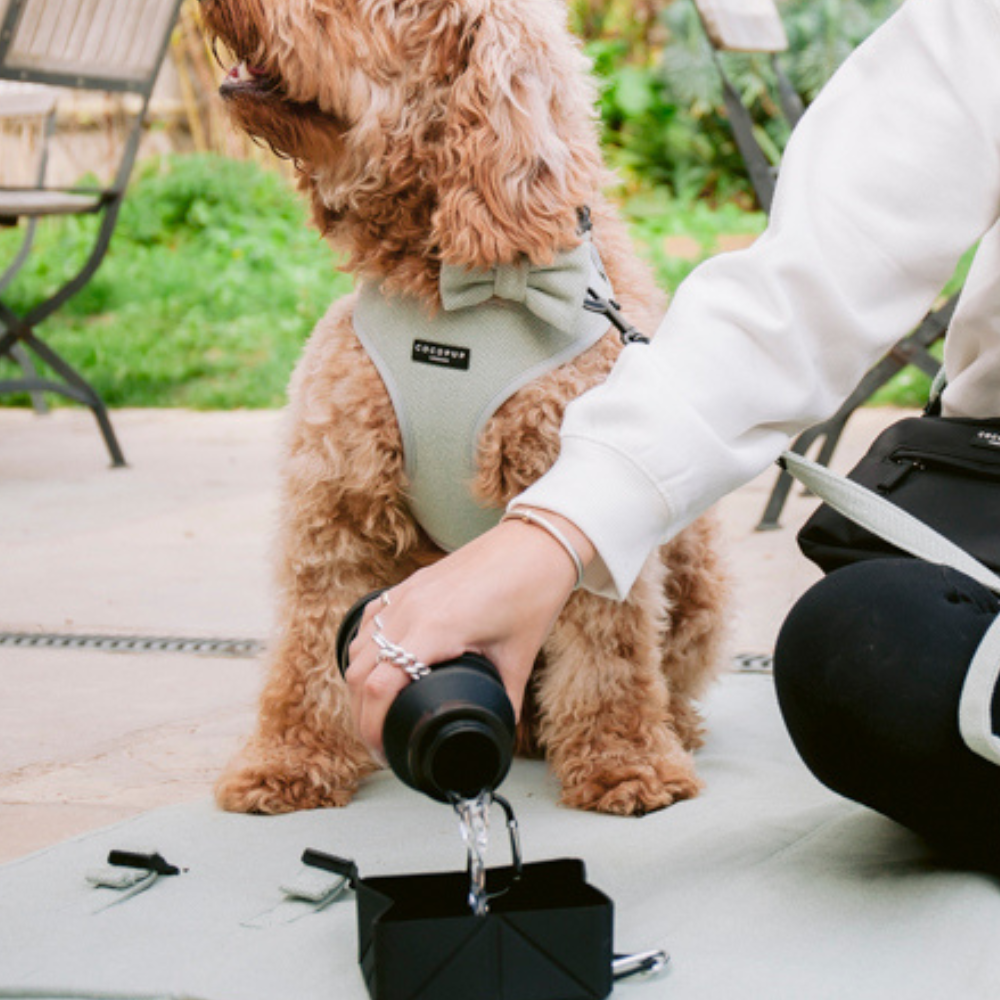 Adventure awaits with your furry sidekick! This black travel bundle has everything for on-the-go pups: a hydration-ready water bottle, a stylish poop pocket, and a foldable bowl that pops up whenever needed. Perfect for park days, road trips, or spontaneous adventures with your four-legged explorer!