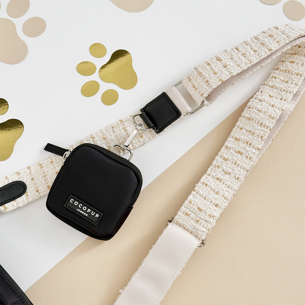 From dog walking to dinner dates, this Black Dog Walking Bag with it's Vanilla Textured Tweed Strap is the perfect accessory. You can stay stylish while carrying everything you need.