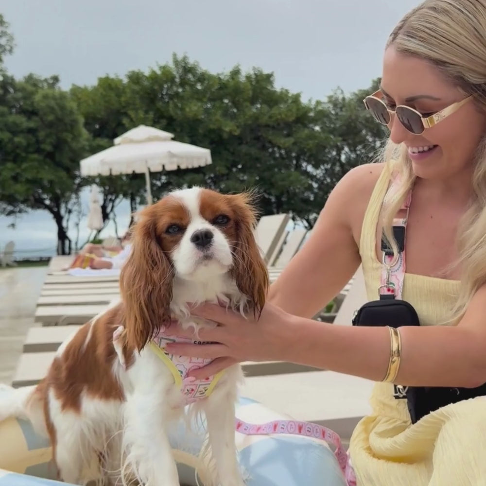 Take your furry friend on a summer adventure with the Dolce Vita Adjustable Neck Harness, Lead & Collar Bundle. The vibrant design and lemon yellow trim add a pop of colour to your dog walks, while the safety locks on the harness and collar buckles keeps your pup secure. Perfect for a holiday trip with your pup!