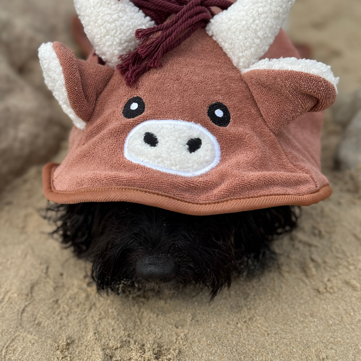 Meet Harold, the Highland Cow Drying Robe.The the paw-fect way to keep your pup cosy and dry after bath time or outdoor adventures.