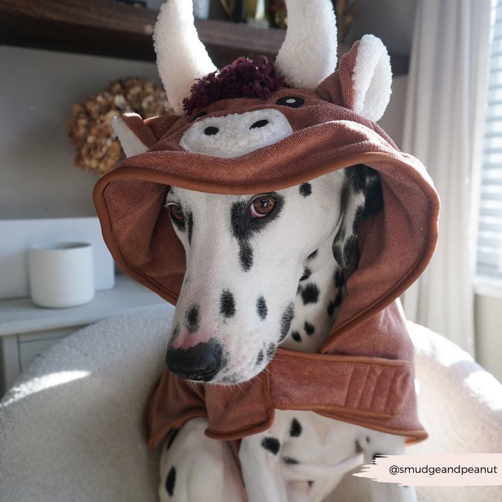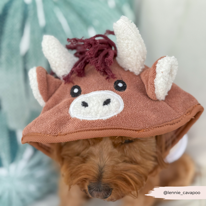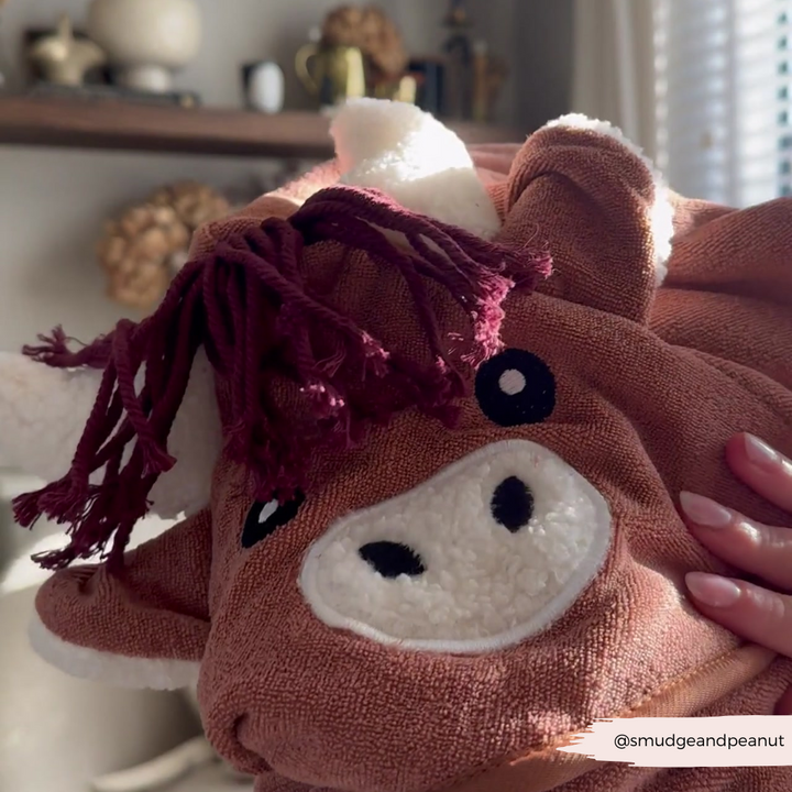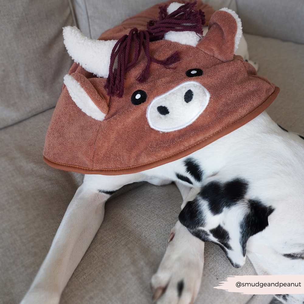 Meet Harold, the Highland Cow Drying Robe.The the paw-fect way to keep your pup cosy and dry after bath time or outdoor adventures.