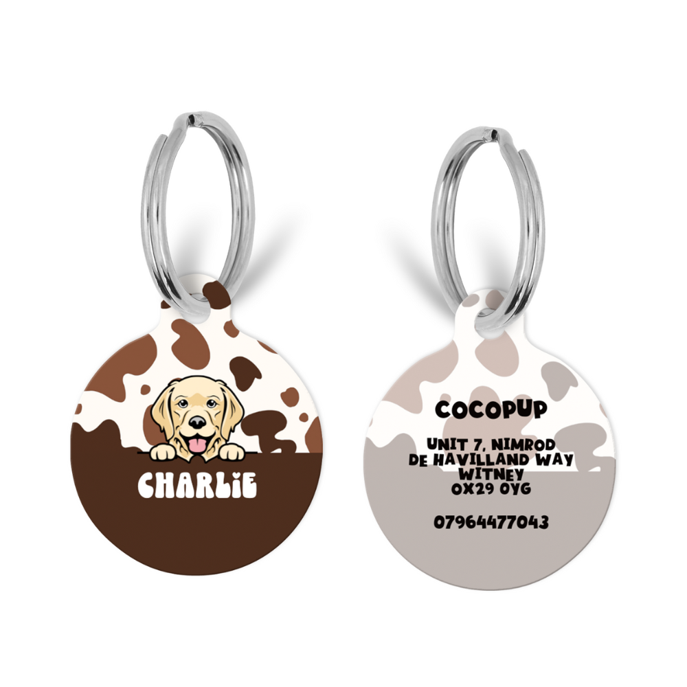 The dog ID tag is double sided, the front features our Rodeo Pup design with a super cute cartoon version of your doggo along with their name. On the back we can print key important information such as your last name, address and phone number. Our ID tags will ensure your pooch can strut its stuff in style.