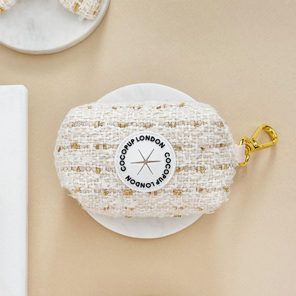 Keep your dog walks cute and stylish with our Vanilla Textured Tweed Poop Bag Holder. Made with luxury fabric, this holder adds a touch of class to every special occasion. (And even the not-so-special ones - let's be real, it's still picking up poop.)
